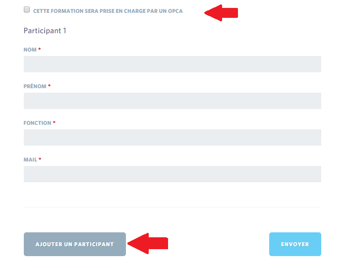 A la fin du formulaire, vous disposez d’un bouton pour ajouter un 2ème participant. Cliquez autant de fois que nécessaire pour inscrire tous vos participants à la formation.
