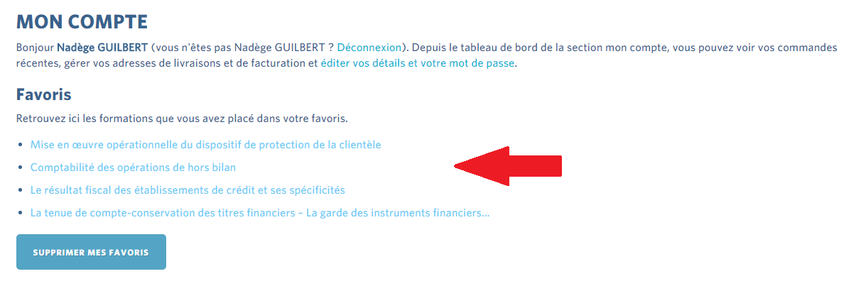 Les formations ainsi repérées apparaissent dans votre back-office (accessible via le bouton Mon Compte) sous l’intitulé Favoris.