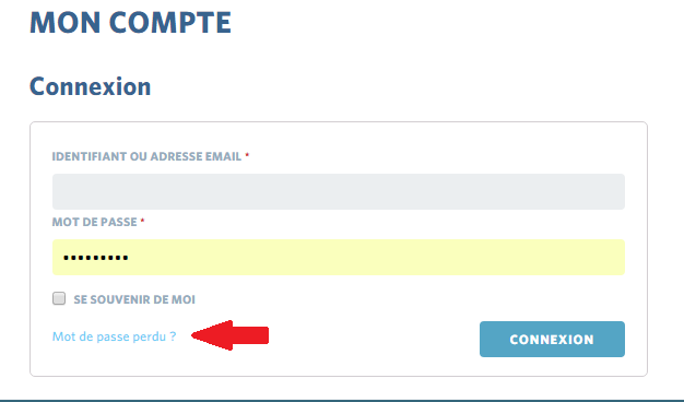 En cas d’oubli de votre mot de passe, cliquez sur le lien Mot de passe perdu ? et saisissez votre email et validez.