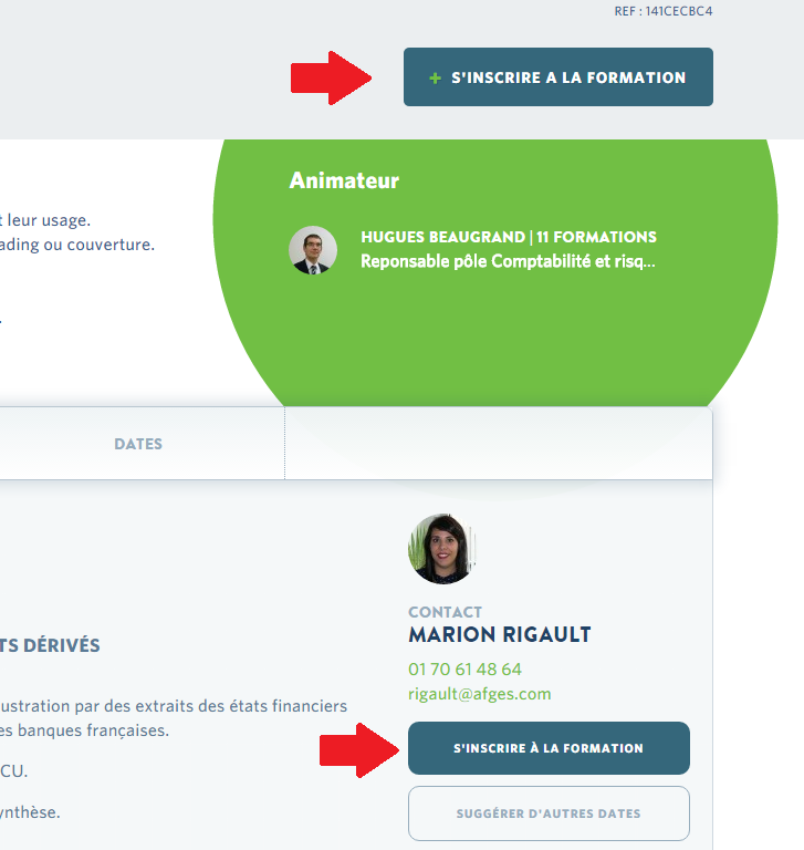 Pour vous inscrire, vous disposez de 2 options : utiliser le bouton S’inscrire à la formation situé en haut de la page ou dans la partie inférieure. Les deux actions sont strictement identiques.